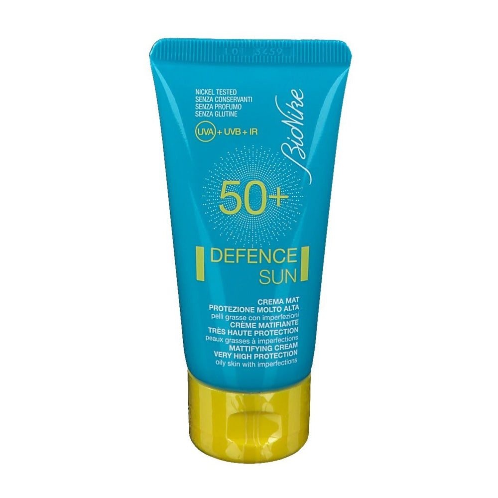 Bionike Defence Ecran Matifiant SPF50+ pour les peaux très claires et hyper-réactives au soleil.