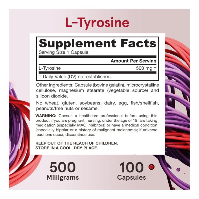 - 500 mg de L-Tyrosine pure par gélule