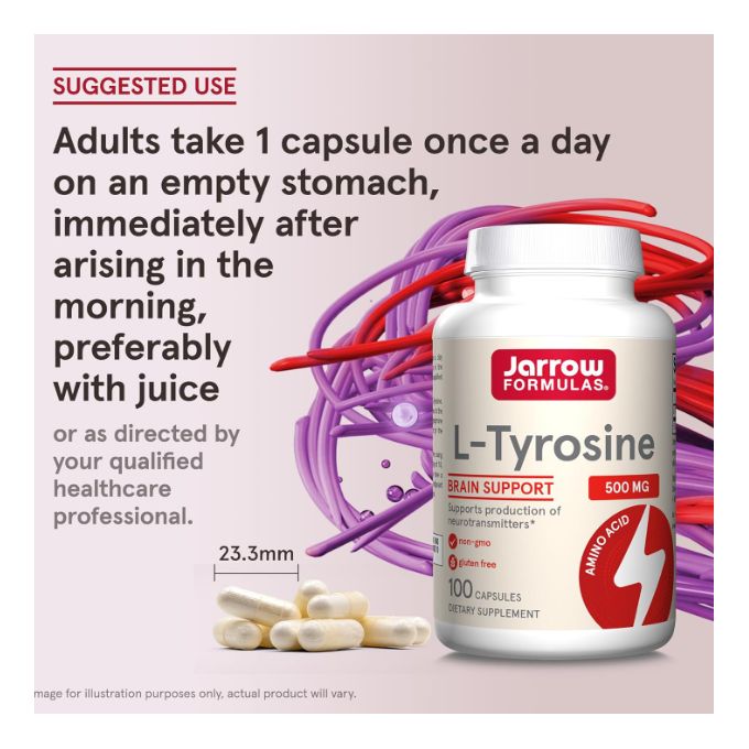 Jarrow Formulas L-Tyrosine 500 mg – 100 Gélules est un acide aminé essentiel impliqué dans la production de dopamine, noradrénaline و adrénaline, trois neurotransmetteurs clés pour l’énergie mentale, la motivation et la gestion du stress. Idéal pour renforcer la concentration, améliorer l’humeur et soutenir les performances intellectuelles.