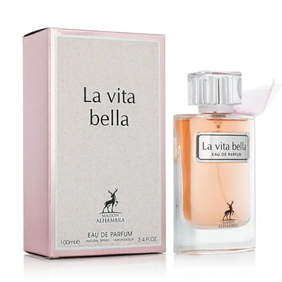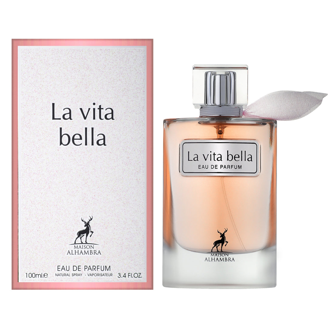 La Vita Bella de Maison Alhambra est une fragrance envoûtante qui célèbre l’élégance, la féminité et la confiance en sol. Ce parfum captivant est une invitation à savourer les plaisirs simples de la vie et a embrasser chaque instant avec passion.