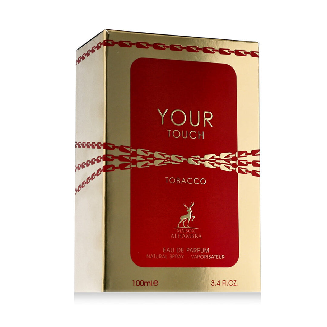 Your Touch Tobacco, une eau de parfum unisexe de Maison Alhambra, offrant une expérience olfactive riche et envoûtante.