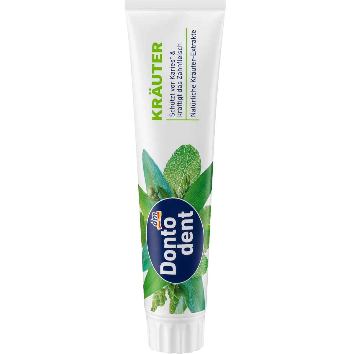 Le dentifrice aux herbes Dontodent favorise le renforcement des gencives et prévient les problèmes dentaires grâce à un brossage régulier. Les extraits de plantes sélectionnés (eucalyptus, camomille, myrrhe, sauge et menthe) confèrent au dentifrice un goût naturel de plantes. Pour une hygiène buccale complète.