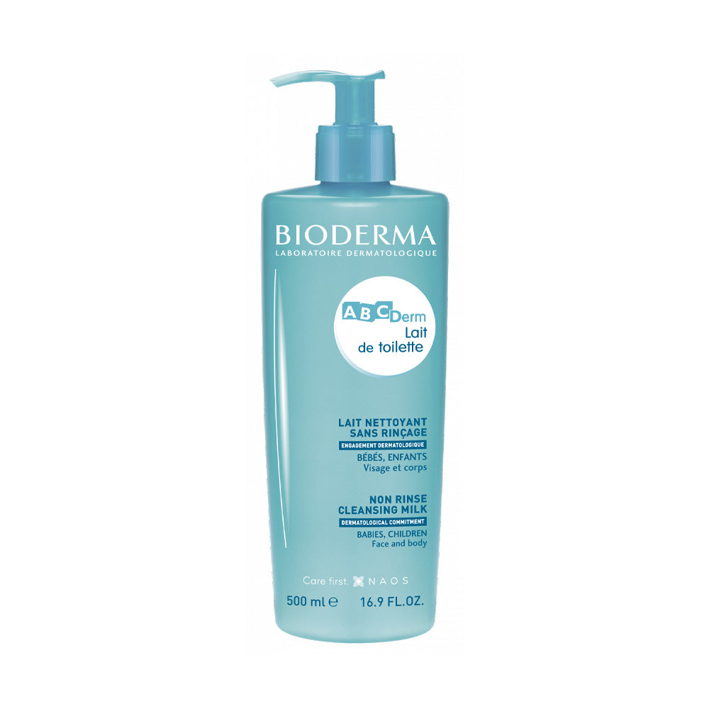 Bioderma ABCDerm No-rinse Cleansing Milk for gently cleansed skin.