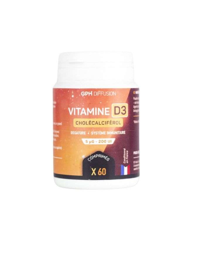 GPH Diffusion brand vitamin D tablets contribute to the maintenance of normal bones and the normal functioning of the immune system.