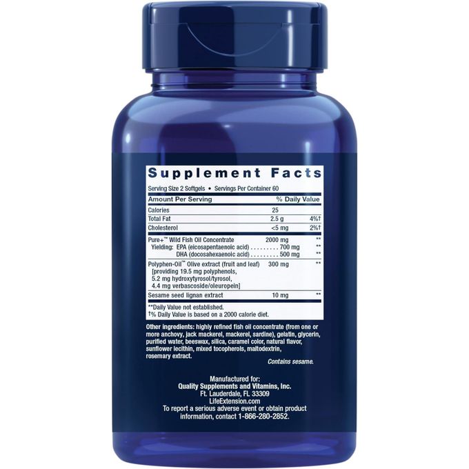 Le Super Omega-3 EPA/DHA fait partie des produits phares de notre gamme de compléments à base d’huile de poisson enrichie en oméga-3. Inspirée du régime méditerranéen bon pour le cœur, notre formule Super oméga-3 fournit une dose optimale d’acides gras oméga-3 EPA et DHA, de polyphénols d’olive bons pour le cœur et est enrichie en lignanes de sésame.