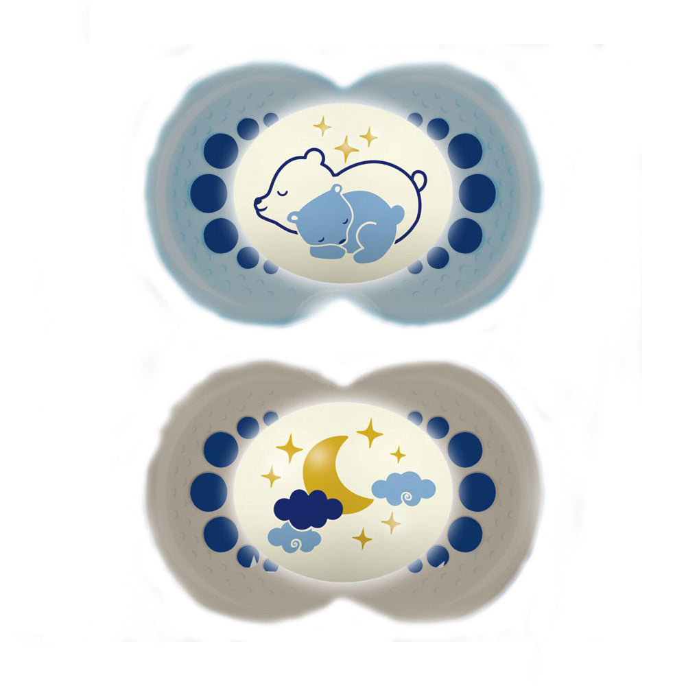 Our MAM Original Night pacifier comes in many collections and glows in the dark for easy finding.