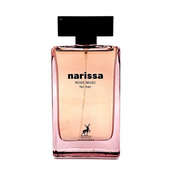 NARISSA ROSE MUSC FOR HER EAU DE PARFUM MAISON ALHAMBRA Pour Femme 100ml pour Elle est une fragrance sombre et opulente, qui combine des notes de musc, de citron, de cèdre et d’iris. La composition est plus chaude et plus sensuelle que l’original. L’ouverture est composée de bergamote et de poivre rose un cœur de cannelle, de muscade et de fleurs d’iris et d’héliotrope. La base comprend des notes de cèdre, de fève de tonka et d’ambre.