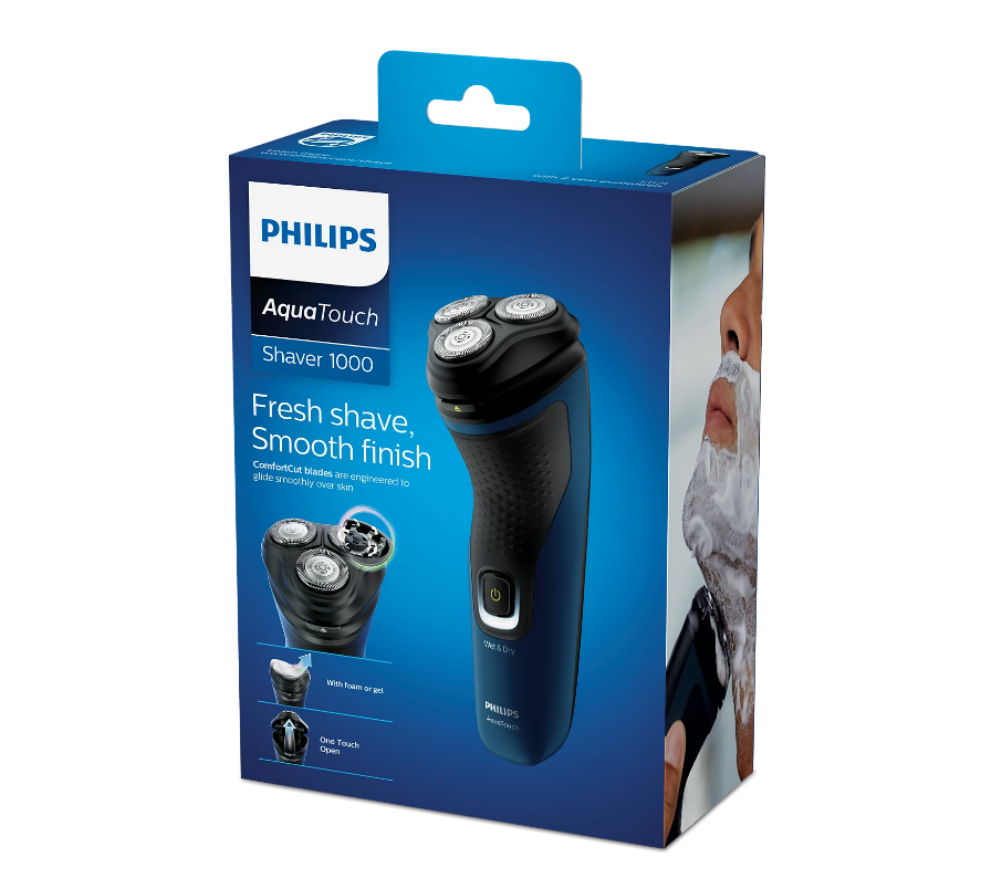 With its self-sharpening ComfortCut blades, the Philips AquaTouch 1000 shaver delivers a refreshingly close shave dry or with shaving foam, all at an affordable price.