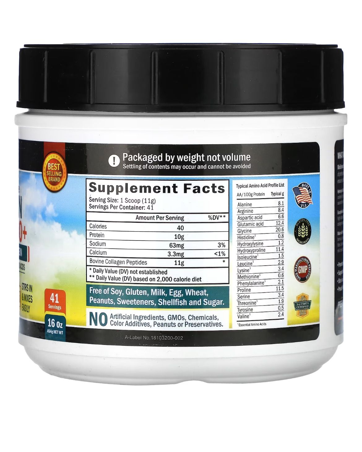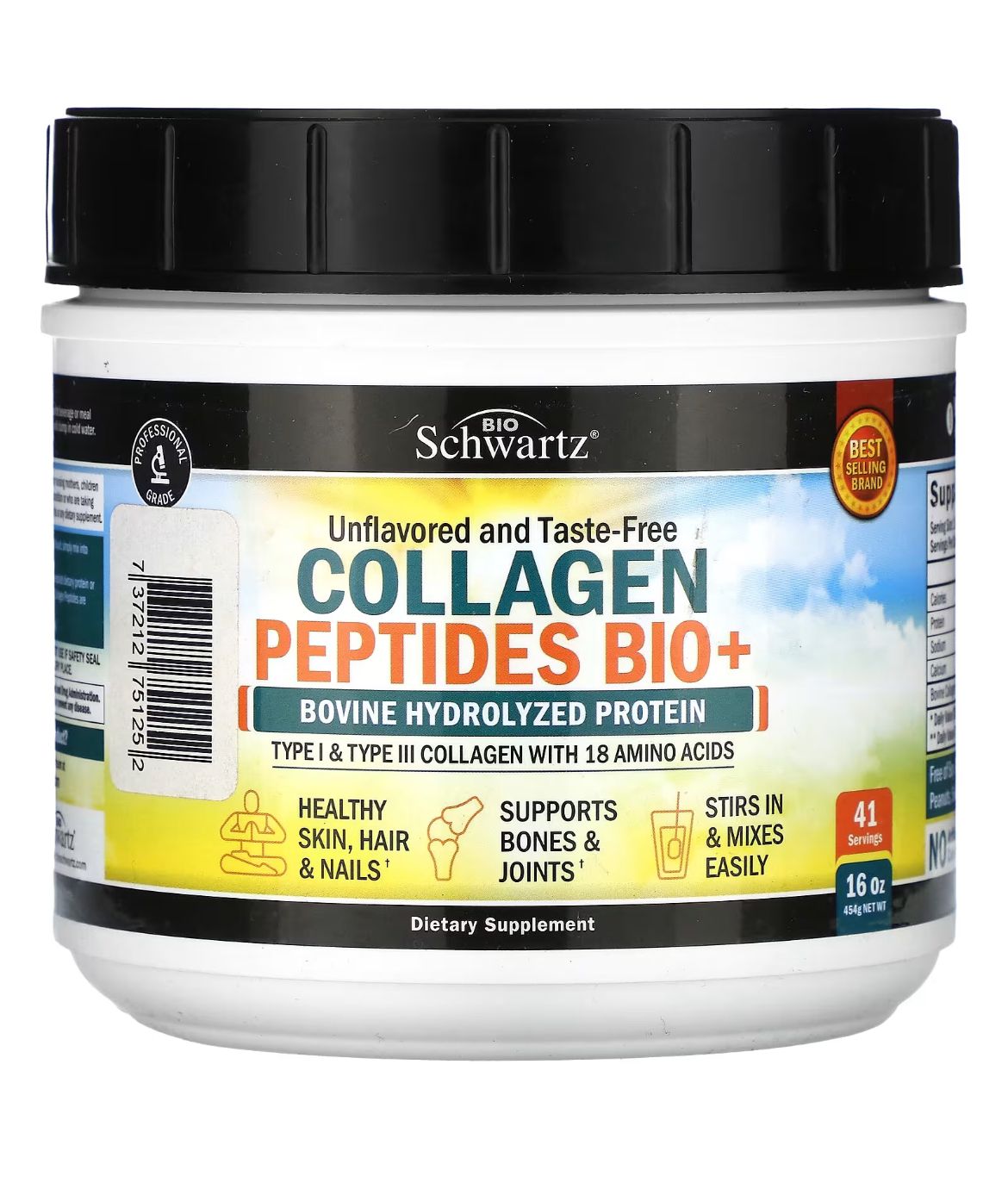 د.م. 500BioSchwartz Collagene Peptides Bio type I et de type III avec 18 acides aminés, Sans arôme