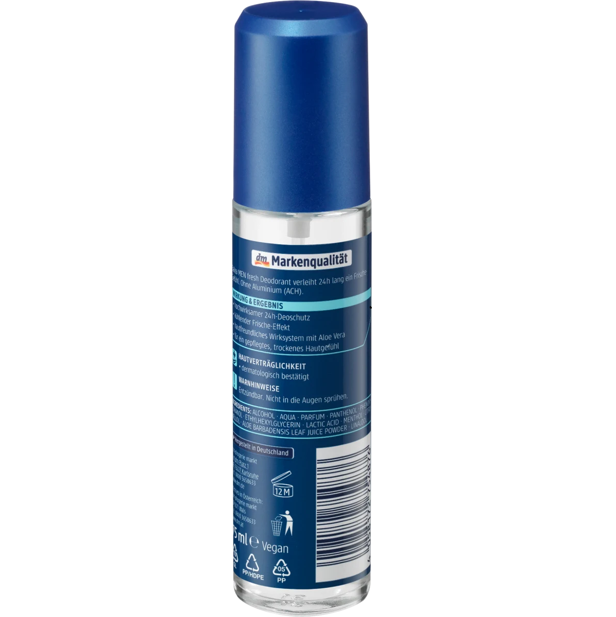 Le déodorant Balea MEN fresh en vaporisateur procure une sensation de fraîcheur pendant 24 h, sans aluminium (ACH). Ainsi, la protection déodorante 24h hautement efficace convainc par son effet fraîcheur rafraîchissant et son système d’action respectueux de la peau à l’aloe vera et procure une sensation de peau soignée et sèche. Formule sans microplastiques ni polymères purement synthétiques solubles dans l’eau.