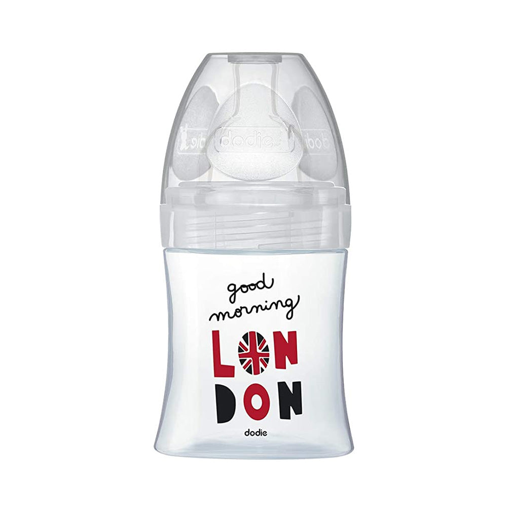 Dodie Biberons Verre Sensation+ Anti-Coliques Tétine Plate Débit Lent London pour faciliter l’alternance entre sein et biberon.