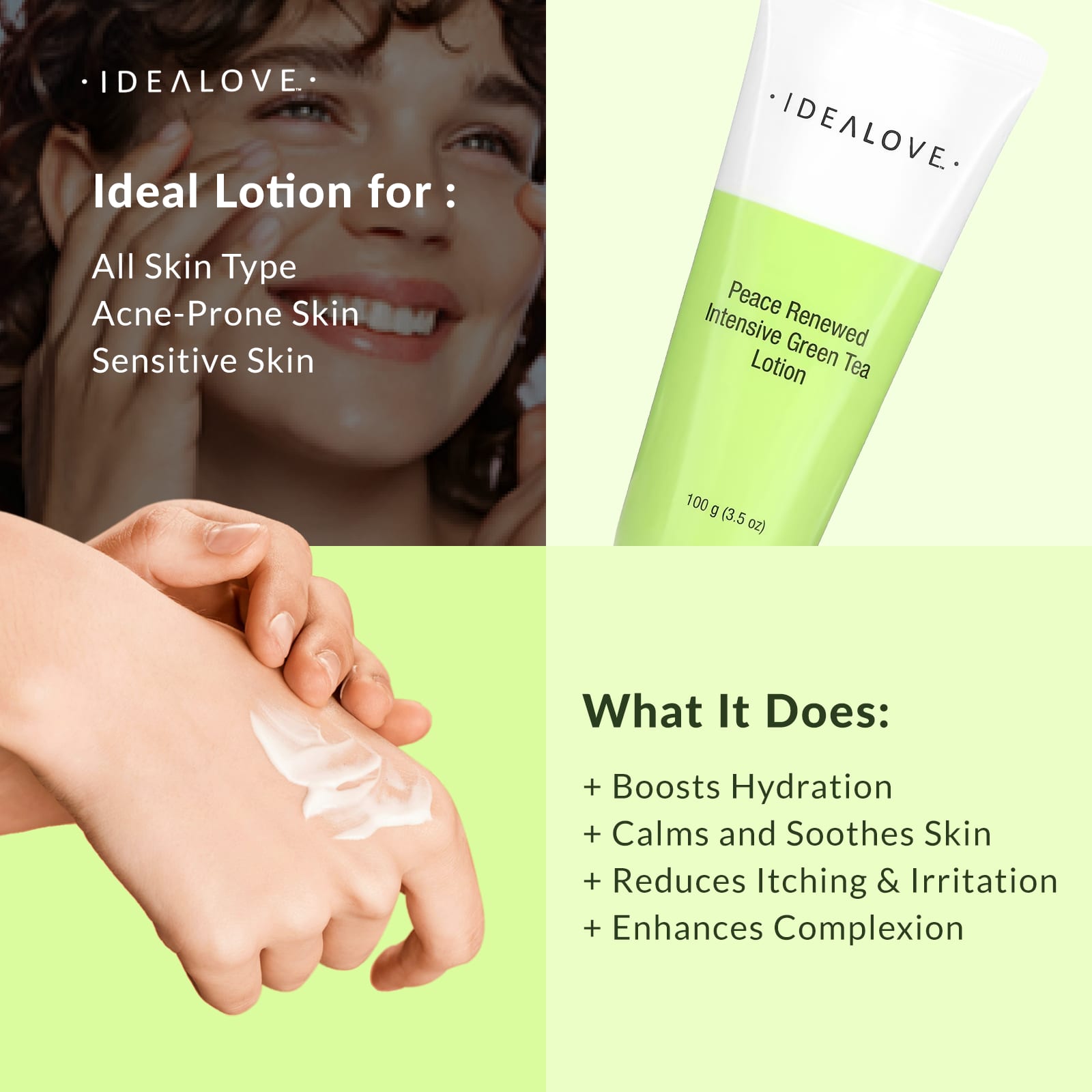 Idealove, Peace Renewed, Lotion intensive au thé vert, 100 g (3,5 oz)