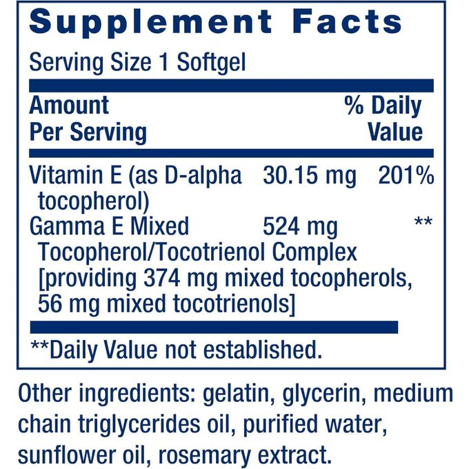 Life Extension Gamma E, Tocophérols et tocotriénols mixtes, 60 capsules