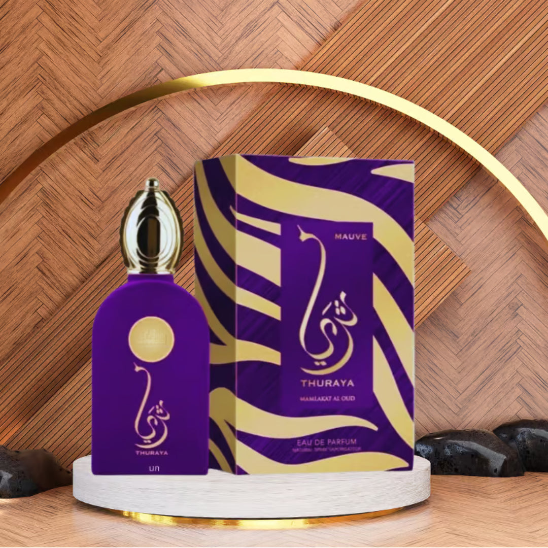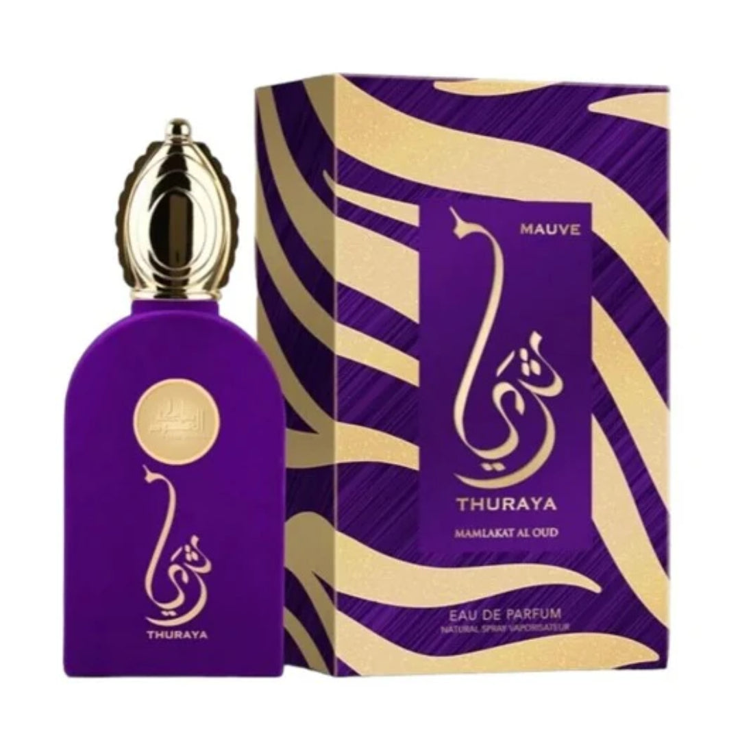 Thuraya Mauve (تريا ) Eau de parfum 100 ml – Mamlakat Al Oud est une eau de parfum féminine qui incarne puissance et élégance. Pensé pour les femmes audacieuses, ce parfum oriental séduit par sa complexité et son raffinement.