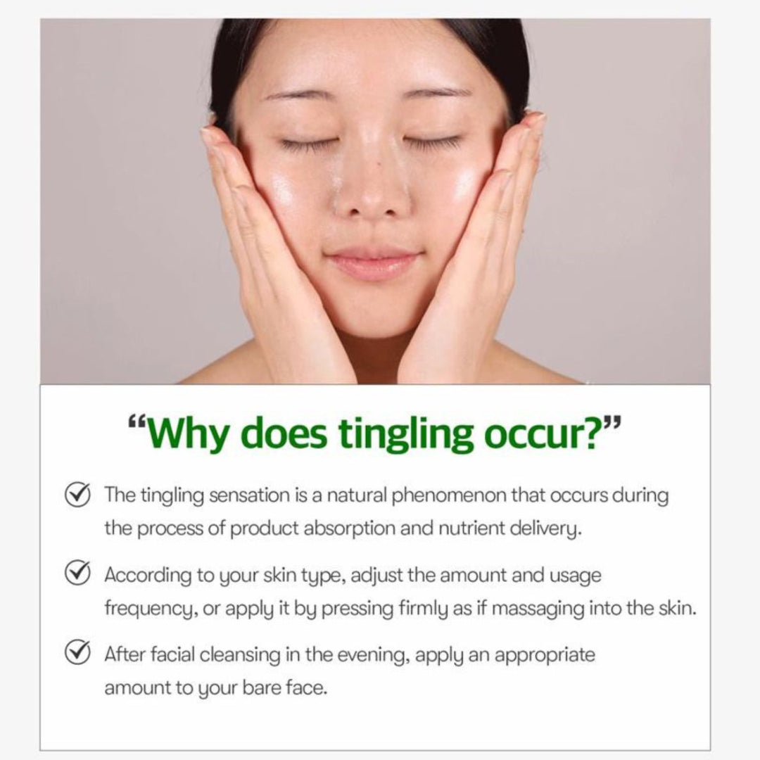 La sensation de picotement est un phénomène naturel qui se produit lorsque le produit est absorbé par la peau et fournit des nutriments.